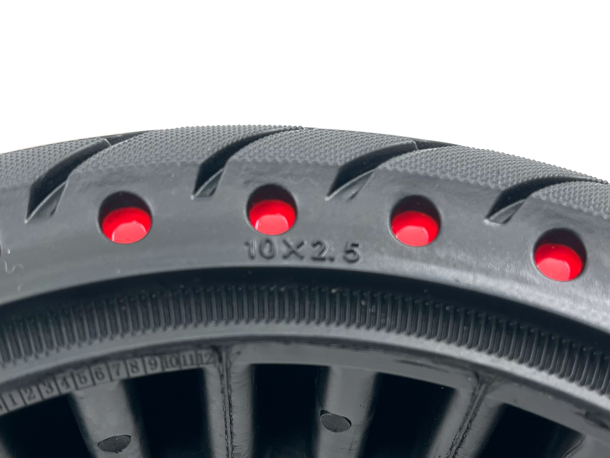 10×2.5 (60/70-6.5) punkteringsfrie dekk til sparkesykkel (svart m. røde prikker)