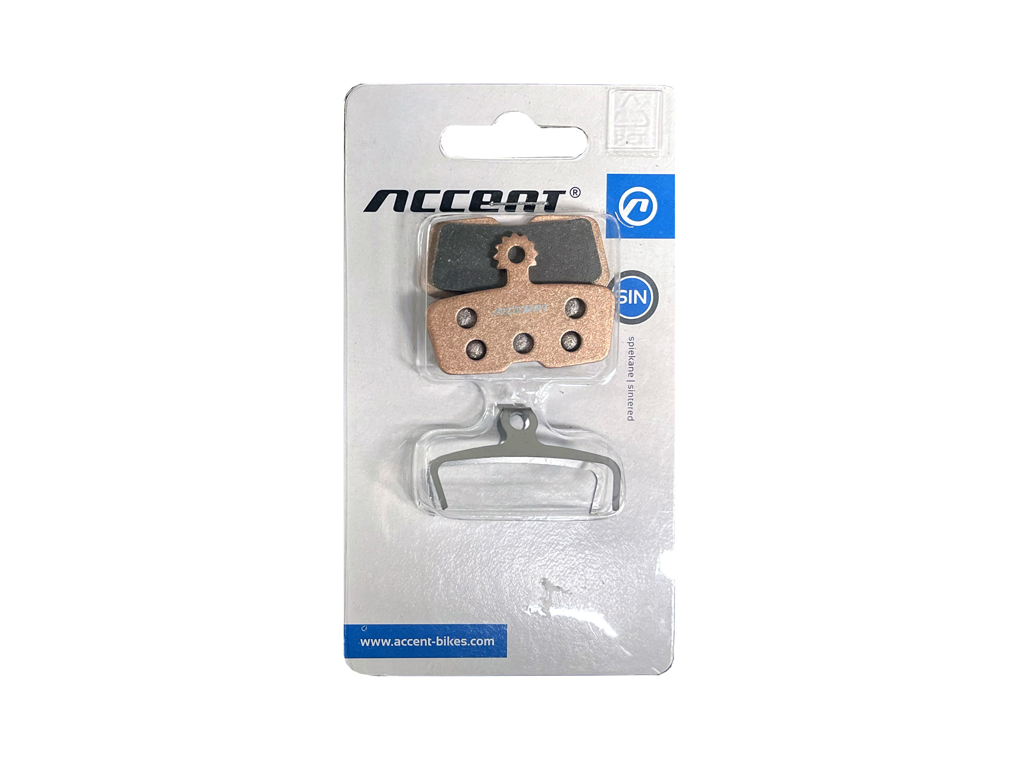Accent bremseklosser til bremser med 4 stempler med sintered belegg, b.a. Avid Code bremser. Skivebremsene tilbyr effektiv bremsekraft med stille bremsing, funker fint i høye temperaturen uten at dette går utover bremseeffekten. Kan brukes på både tørre og våte dager. Leveres i sett til en brems.