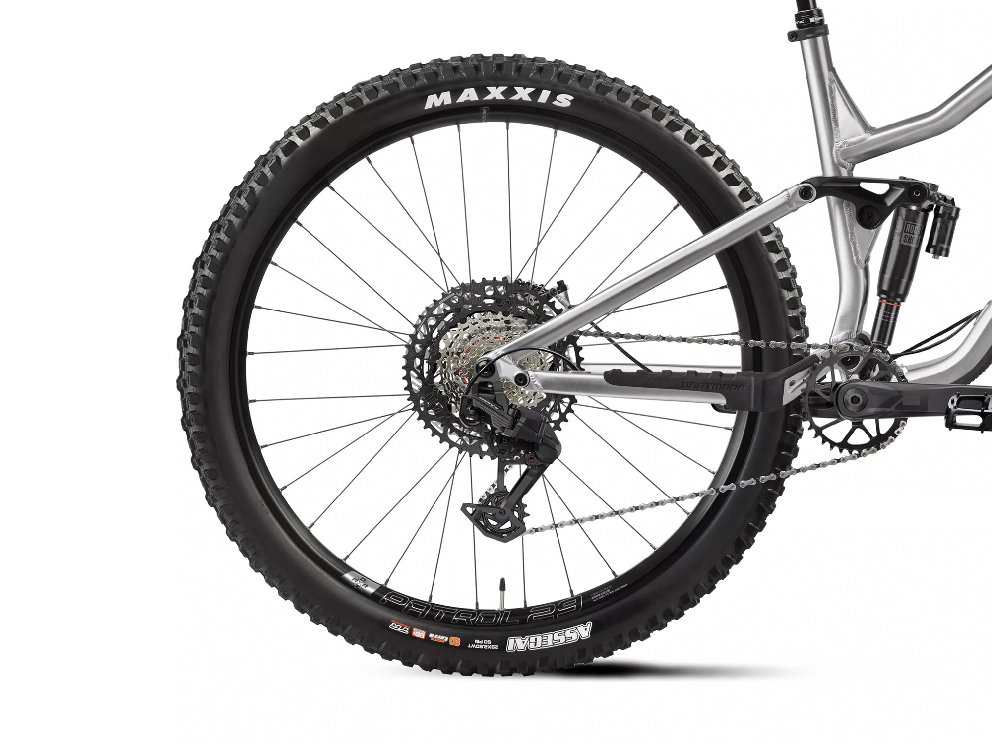 Hjulene er bygget rundt sterke Patrol sveiste felger med sammenleggbare Maxxis Assegai dekk som gir maksimalt grep og kontroll i alle forhold. Cockpiten består av Dartmoor Shorty 35mm stem og det nye Viper Pro styret i 7075-aluminium – en perfekt balanse mellom styrke, lav vekt og presis kontroll.