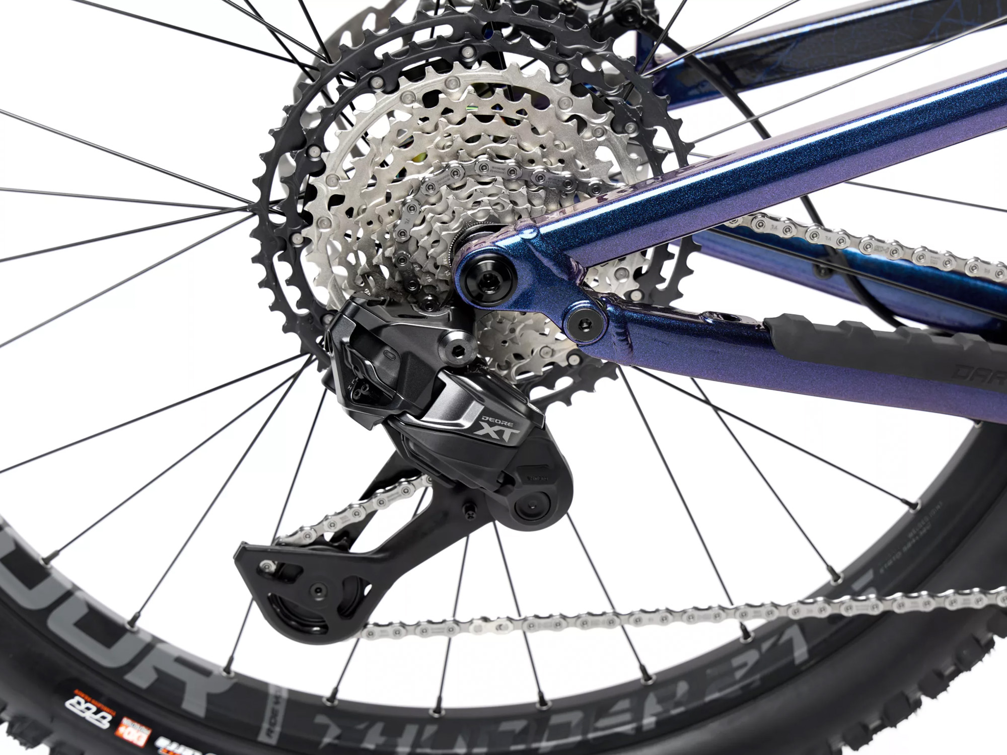 Hjertet i sykkelen er den helt nye elektroniske Shimano XT Di2 12-delte drivlinjen. Systemet gir lynraske, presise girskift og ekstrem driftssikkerhet, selv under harde belastninger i bratte klatringer eller tekniske partier. Sammen med kraftige Shimano XT BR-M8220-bremser får du bremsekraft og modulering på absolutt toppnivå.