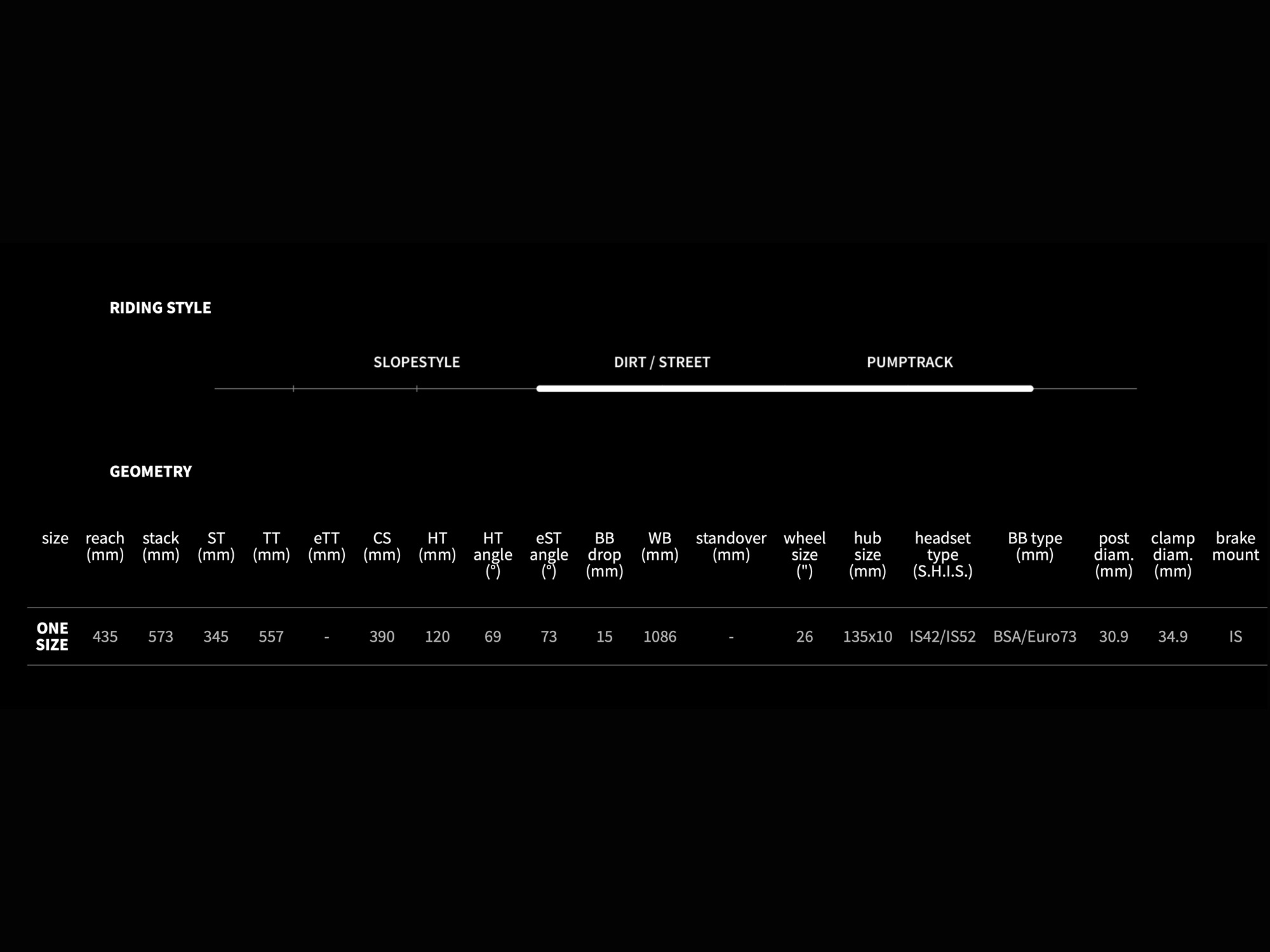 Shine Pro er den perfekte kombinasjonen av dirt jump-ytelse, stilrent design og komforten fra full demping – klar for park, dirt jumps og store tricks.