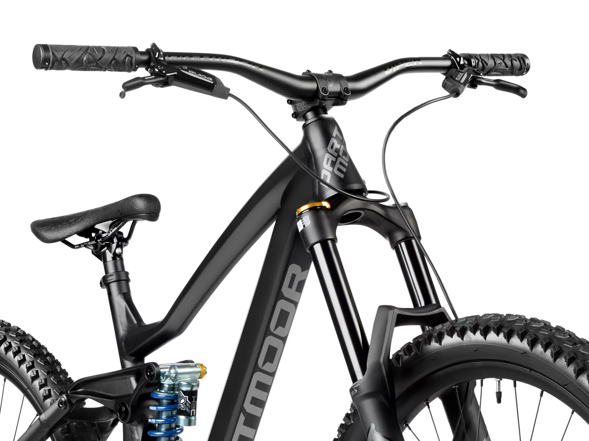 Drivverket er bygget rundt et enkelt og robust singlespeed-system med Dartmoor kjedestrammer og FSA Comet Heavy Duty-kranksett. SRAM Guide T 4-stempelbremser gir kraftig og pålitelig bremsekraft, noe som gir deg full kontroll når hastigheten blir høy. Thunderbird FR Evo er en perfekt bikepark-sykkel for ryttere som vil fokusere på hopp, flyt og moro – uten å bruke unødvendige penger på kompliserte drivverk.