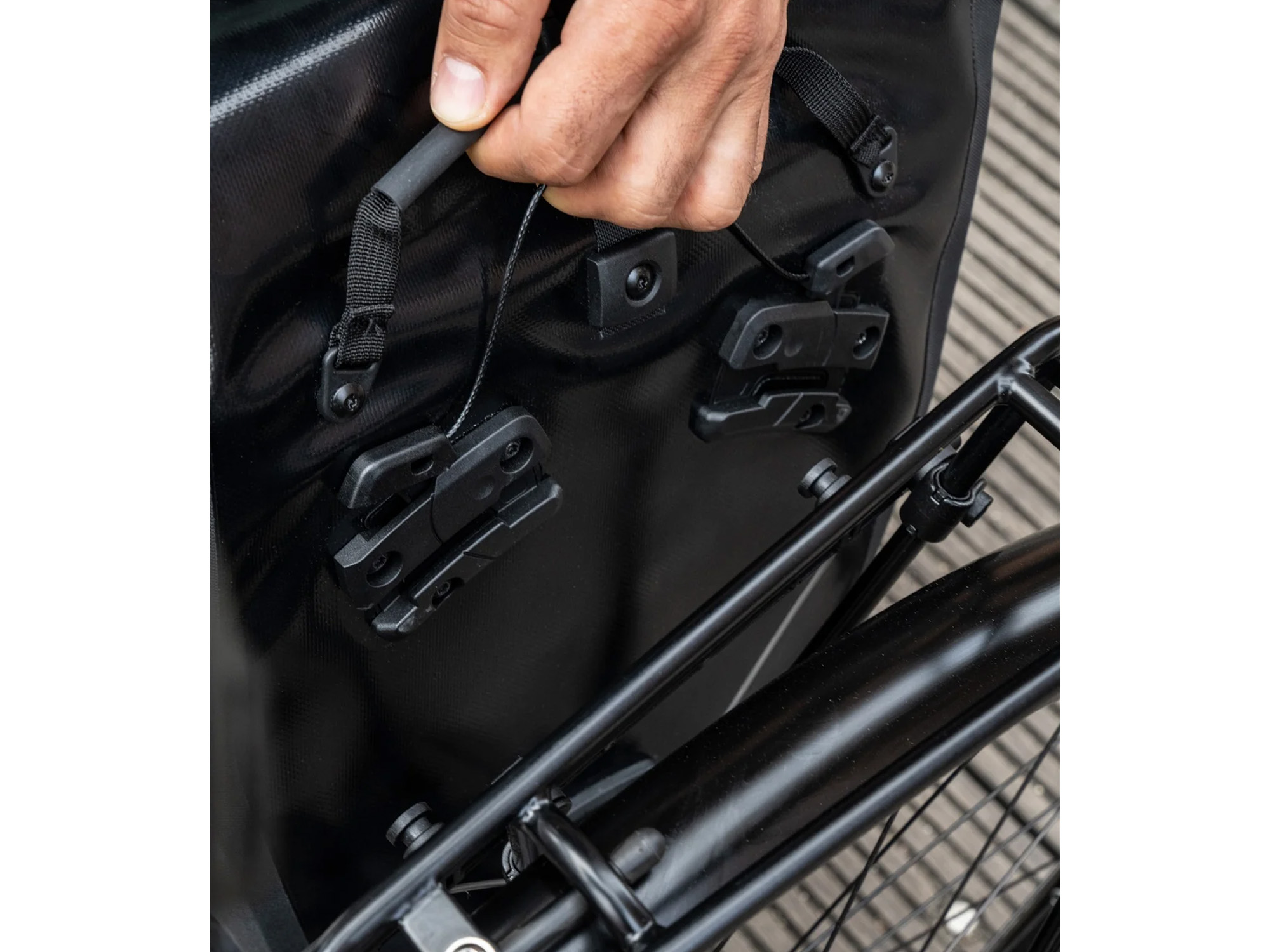 QL2.1-versjonen er utstyrt med det selvlåsende Quick-Loc23.1 monteringssystemet. Vesken hektes raskt og enkelt på bagasjebrettet, låses automatisk ved påkobling og frigjøres automatisk når du løfter den av. Systemet har tre festepunkter og passer standard bagasjebrett, med individuell justering av høyde og vinkel. De flate festeelementene på baksiden gjør vesken ekstra praktisk i daglig bruk.