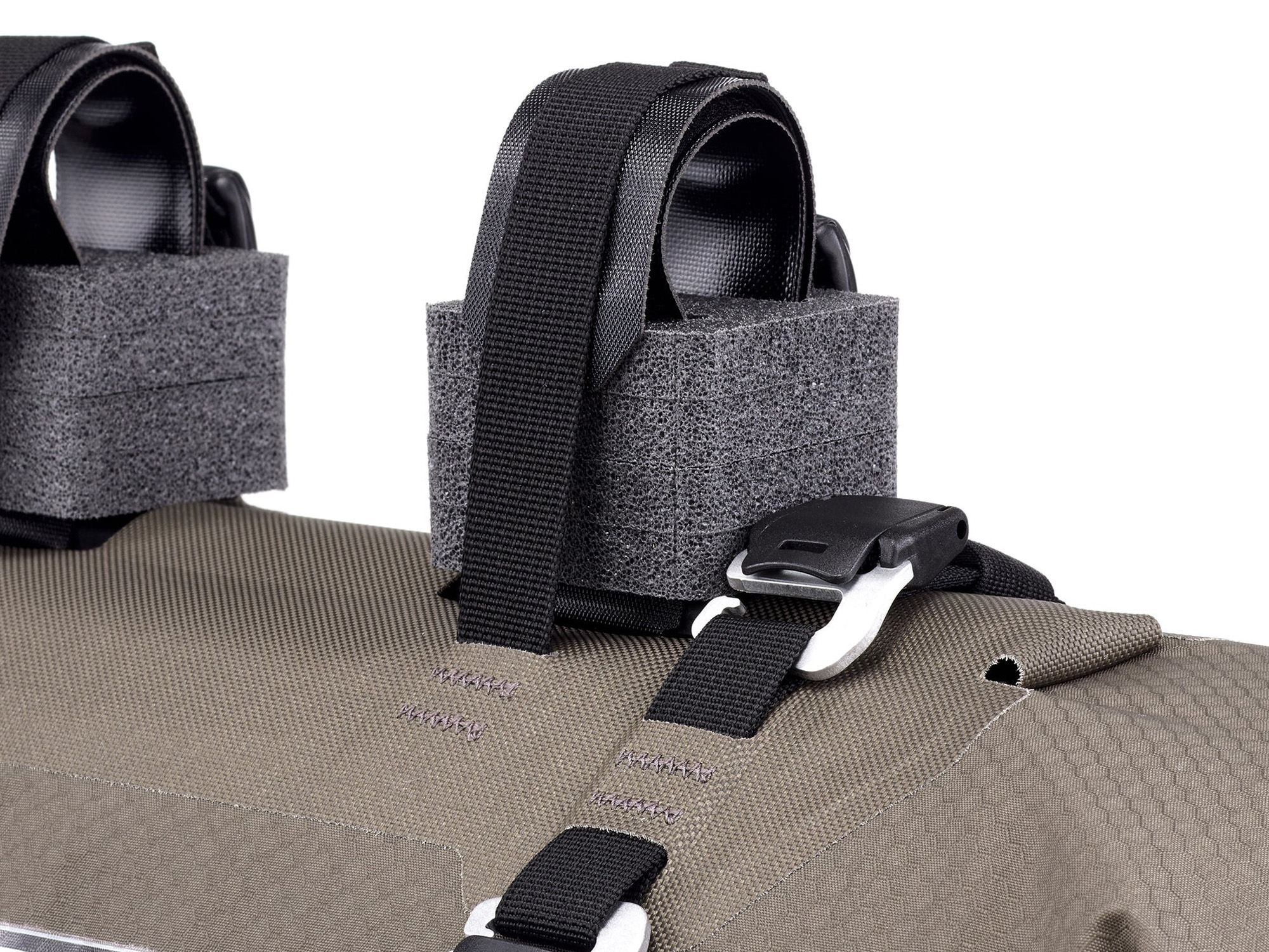 Rullelukking i begge ender gir rask tilgang til innholdet, mens kompresjonsremmer på utsiden lar deg feste ekstra utstyr. Fire kroker gjør det enkelt å montere en ORTLIEB Accessory-Pack for enda mer oppbevaringsplass. Monteringssystemet består av distanser og to sterke borrelåsstropper, og sikrer trygg feste til alle typer styre, inkludert karbonstyre. Den stive innsiden og festet mot styrestammen gir ekstra stabilitet, uansett terreng.