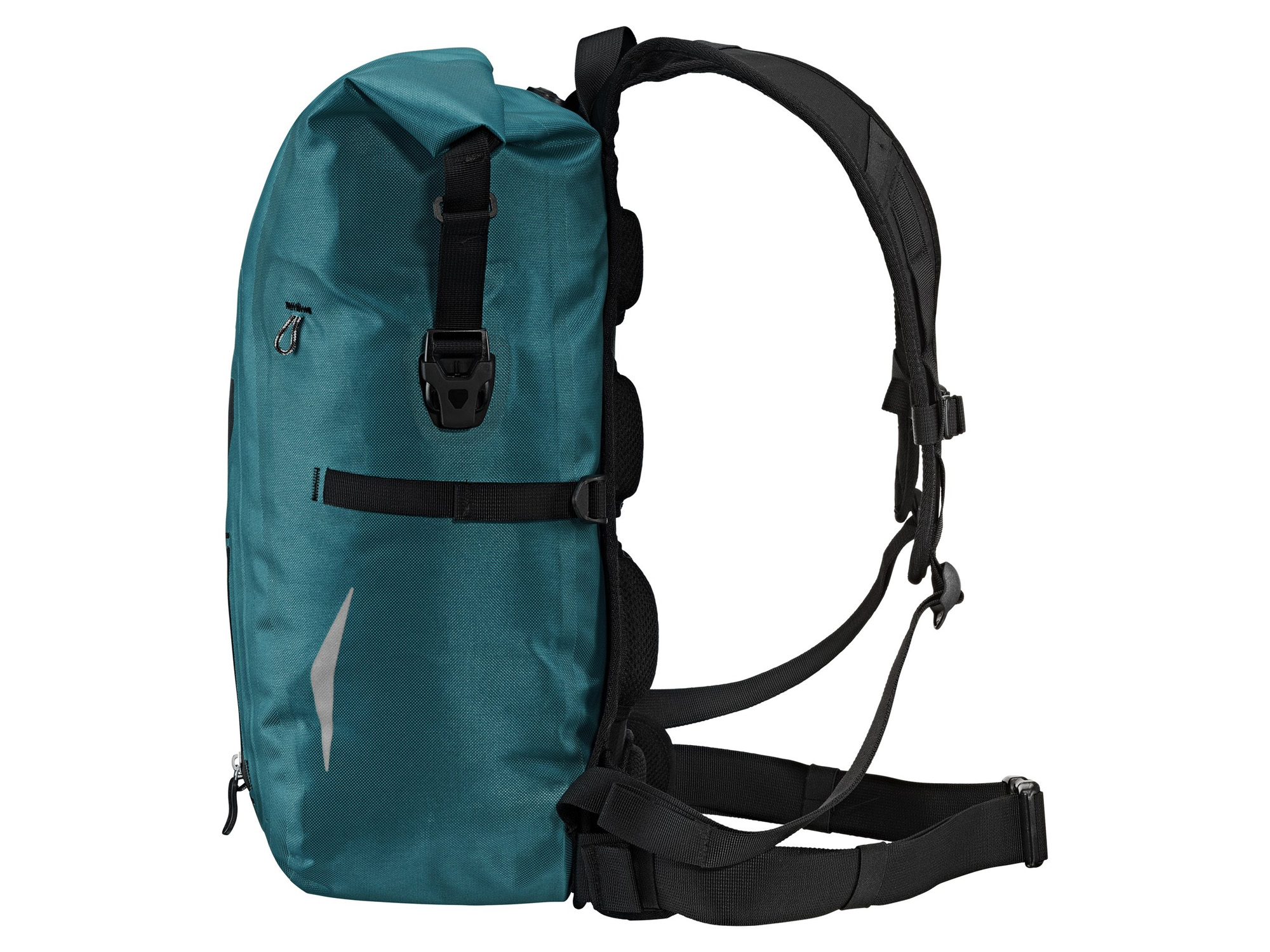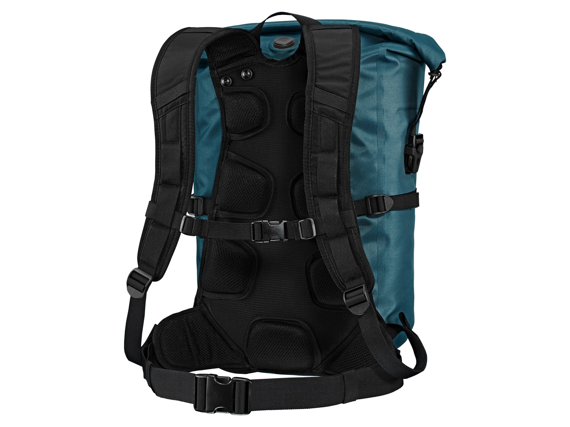 Den ergonomiske, polstrede bæreselen kombinert med justerbart hoftebelte gir optimal passform og svært god ventilasjon. Resultatet er høy komfort – selv når sekken er fullpakket. Rullelukking med kompresjonsstropper gjør det enkelt å tilpasse volumet etter behov og holder innholdet trygt og tørt.