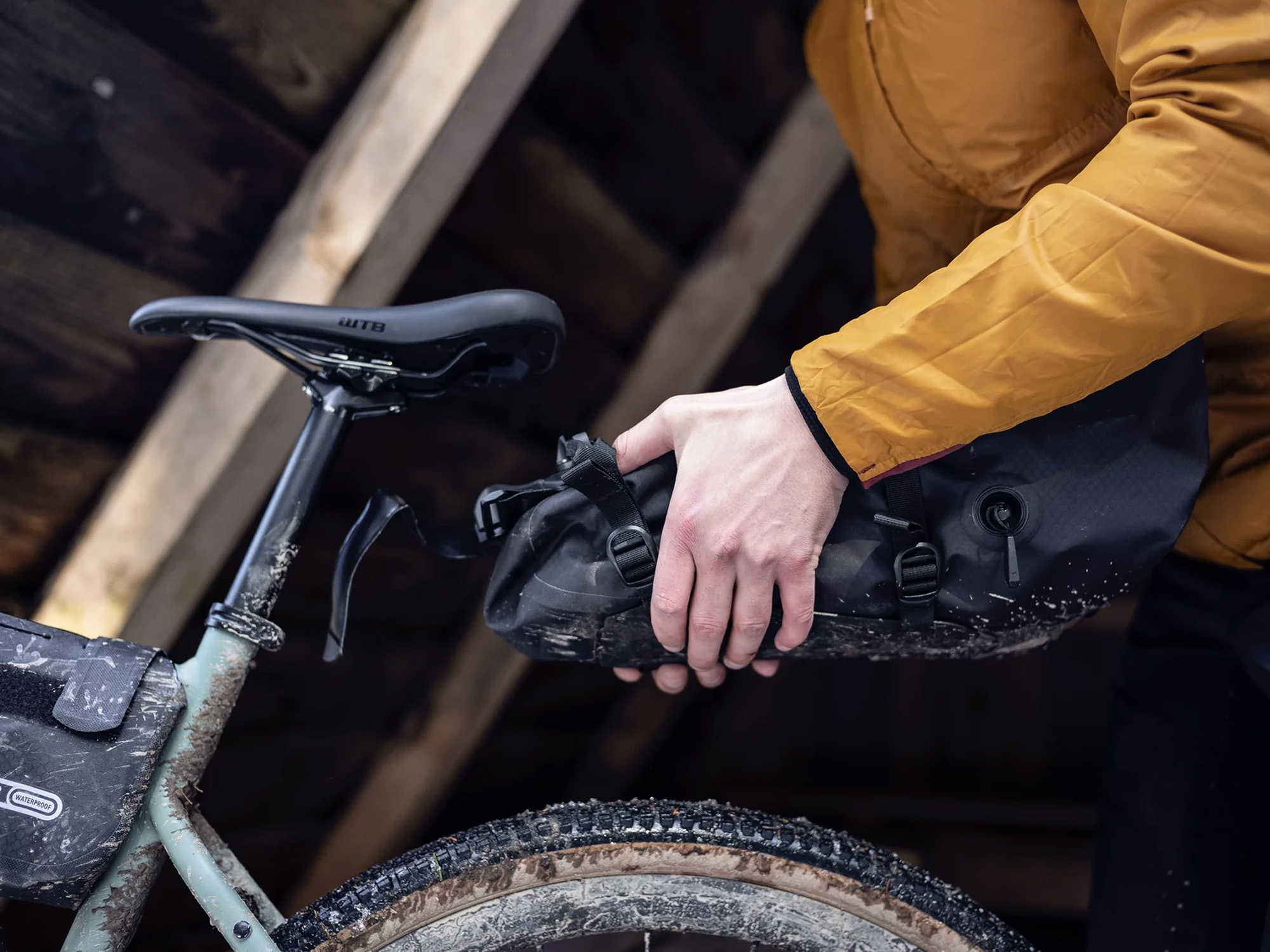 Vanntett og slitesterk, laget i nylon som tåler både vær og terreng, holder denne seteposen innholdet ditt trygt på stier, fjellpass eller grusveier. Fem kompresjonsstropper og en indre forsterkning sørger for at alt sitter tett og sikkert. En ventil med håndstropp gjør det enkelt å justere volumet, og en elastisk snor på utsiden gir mulighet for ekstra utstyr. Beskyttelsesplaten under vesken fungerer både som deksel mot hjul og som skvettlapp, for å unngå skader fra dekk.