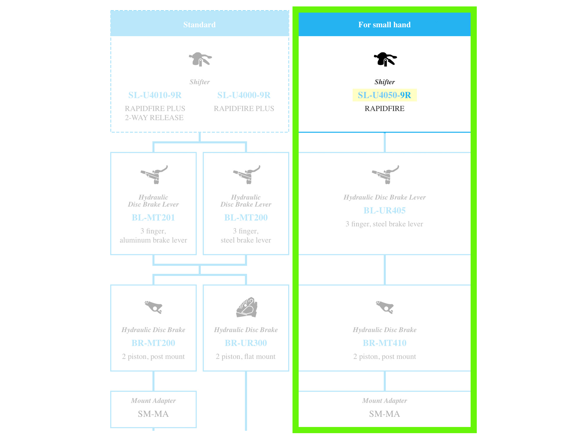 Shimano Cues SL-U4050-R 9-delt girspak. Med Rapidfire Plus og klemme feste. Med enkel og rask tilgang til girspaken og en spak som er responsiv og lett å trykke inn leverer SL-U4010 girspaken pålitelig og komfortabel girskifting i terrenget. Den nye U4010 spaken tilbyr gode justeringsmuligheter inkludert justering på skyvelengden til spaken før den skifter gir.