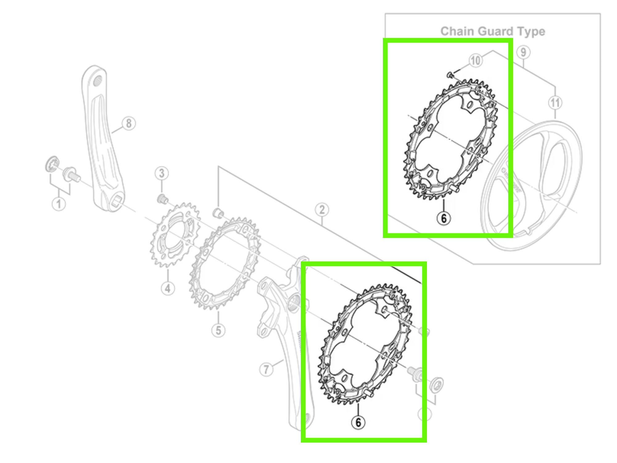 Shimano krankdrev med 42 tenner. Dedikert til drivverk 3×8 med drevstørrelser 42-32-22T. Symmetrisk boltavstand mad BCD 104mm.
