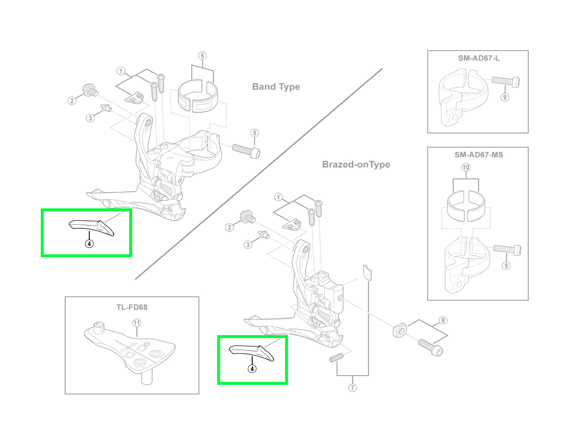 Skid plate eller glideplate for FD-6800 framgir, som demper støy når kjedet kommer for nærme innsiden av cage på framgiret.